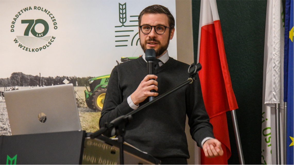 Następnie Adam Fojud programista WODR omówił cyfrowe wsparcie ochrony roślin w ramach systemu eDWIN, który opiera się na danych, analizach oraz doświadczeniu doradców WODR. Uczestnicy dowiedzieli się, w jaki sposób narzędzia cyfrowe pomagają podejmować trafniejsze decyzje dotyczące ochrony upraw, a także jak system ten wpisuje się w szerszą strategię cyfryzacji rolnictwa.