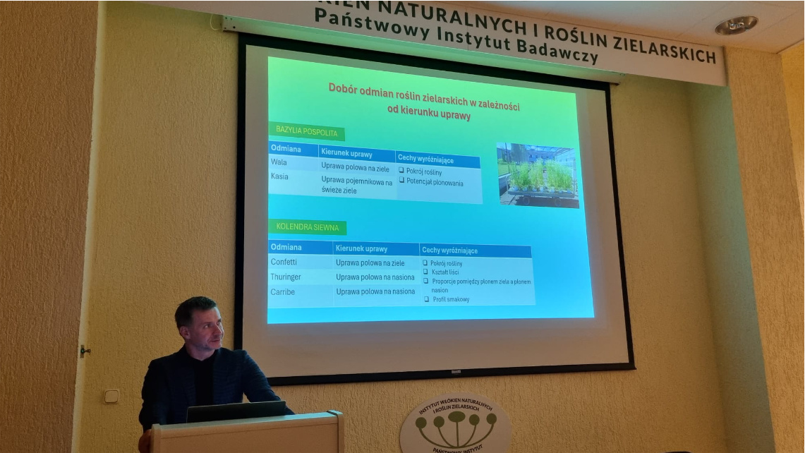 Prelegent w jasny sposób wyjaśnił uczestnikom podział hodowli roślin na twórczą i zachowawczą. Następnie krok po kroku omówione zostały kluczowe etapy hodowli twórczej: od strategicznego wyboru odpowiedniego gatunku, poprzez zdefiniowanie kierunku hodowli, aż po precyzyjny wybór metodologii działania. Zrozumienie genetyki gatunku okazało się nierozerwalnie związane z docelowymi cechami użytkowymi roślin, co ma bezpośrednie przełożenie na realia i charakterystykę wymagającego rynku roślin zielarskich. Nie zabrakło również powiewu innowacji – wykładowca z pasją opowiadał o zastosowaniu najnowocześniejszych metod biotechnologicznych w hodowli roślin, które otwierają przed rolnictwem zupełnie nowe horyzonty.